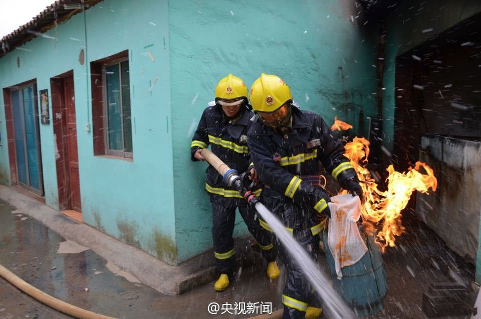 据央视新闻报道,1月6日10时30分许,贵州紫云县松山镇一羊肉火锅店发生火灾。起火的厨房内有4瓶液化气罐,其中一瓶正猛烈燃烧,随时可能发生更大的意外。紫云消防的两名消防员将着火的液化气罐转移至安全地带,化险为夷。