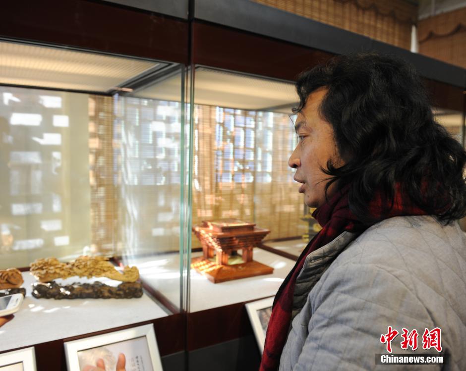 北京时间1月6日下午,来自全国多个省市的木雕大师会聚北京,共同参与“甲午首届中华传统木雕记忆精品展”,图为参展作品。 中新网记者 李卿 摄