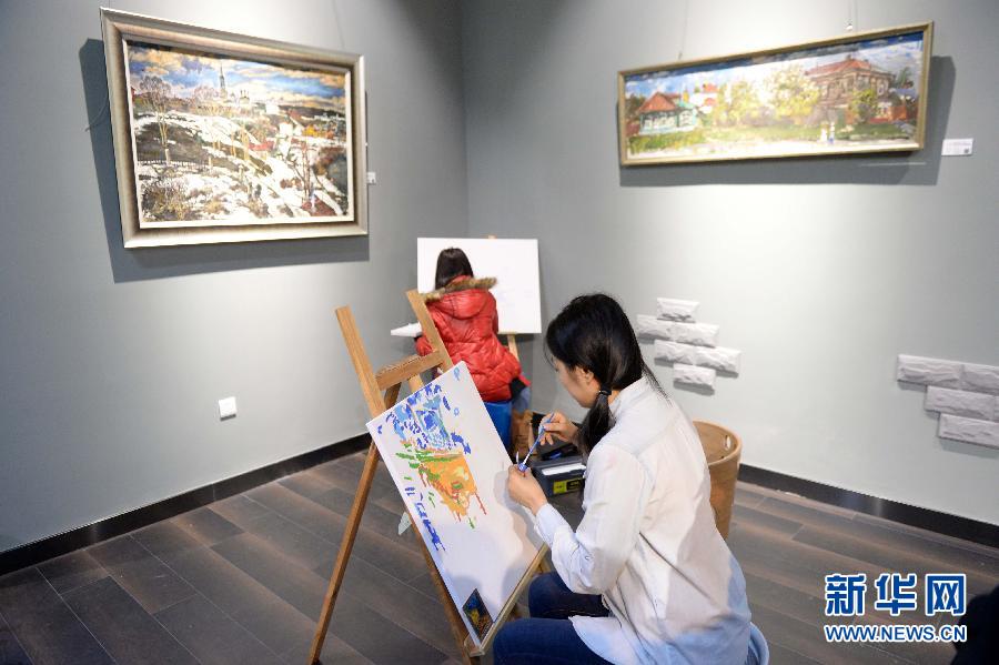 1月5日,油画创作者在哈尔滨国际油画交易中心展览厅内临摹油画。当日,哈尔滨国际油画交易中心在黑龙江现代文化艺术产业园正式面向公众开放。该中心是集油画教育培训、创作生产、展览销售等功能于一体的油画交易平台,现有经营场所1.5万平方米,汇聚俄罗斯、中国、波兰、朝鲜等国家和地区的精品油画。新华社记者 王凯 摄