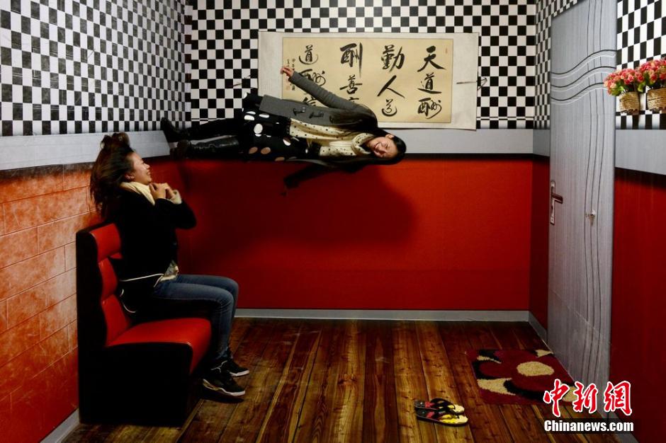 1月7日,在苏州“3D错觉艺术馆”内,市民融入奇趣的视觉与空间相结合的画面中,便可拍出各种趣味搞笑的创意照,增添了许多欢乐。据了解,该艺术馆在3d立体效果基础上,融入了互动艺术装置、互动雕塑、灯光艺术、3D荧光夜光画、错觉艺术等,令观众的视觉感观与艺术体验进一步提升。王思哲 摄