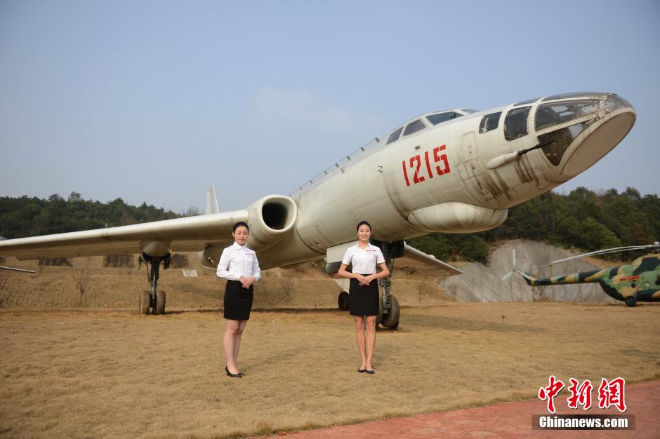 1月7日,几位参加空乘人员招募的学生来到长沙航空职业技术学院的飞机展示坪合影留念。中新社发 杨华峰 摄