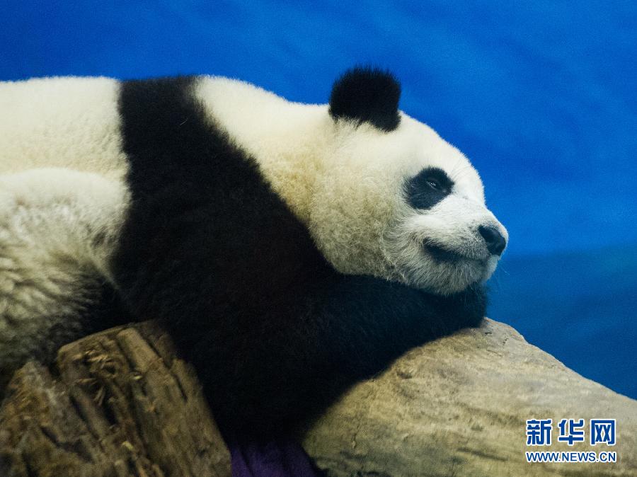 1月7日,大熊猫“圆仔”在台北动物园熊猫馆内休息。新华社记者申宏摄