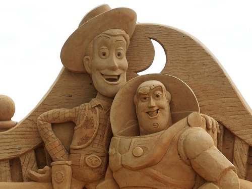 栩栩如生的经典动画卡通人物沙雕有电影《玩具总动员》中的的牛仔胡迪和宇宙英雄斯巴光年。