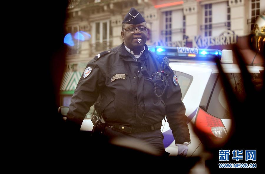 1月7日,在法国巴黎,警察在街头检查过往车辆。位于法国巴黎的《沙尔利周刊》总部7日遭到武装分子袭击,目前已造成12人死亡,另有多人受伤。法国总统奥朗德强烈谴责此次袭击。他在袭击现场说:“这无疑是一起恐怖袭击。”新华社记者陈晓伟摄