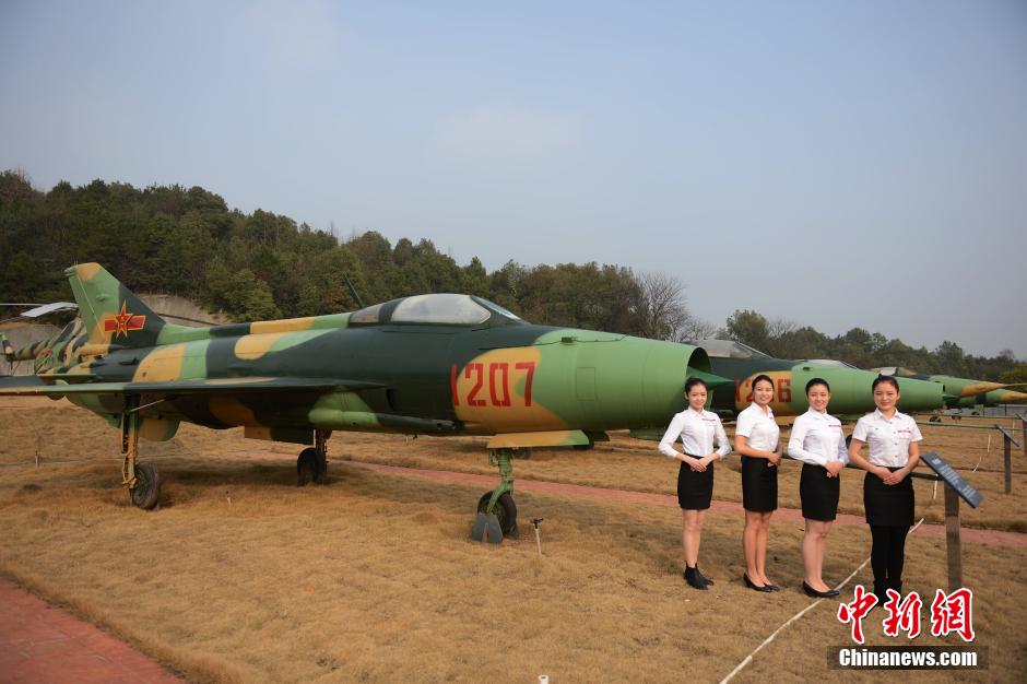 1月7日,几位参加空乘人员招募的学生来到长沙航空职业技术学院的飞机展示坪合影留念。中新社发 杨华峰 摄