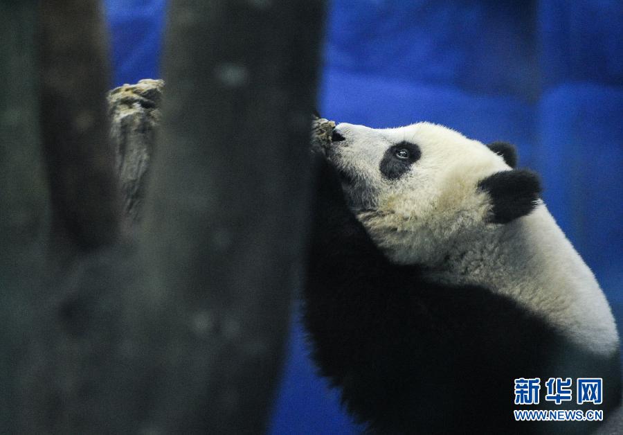 1月7日,大熊猫“圆仔”在台北动物园熊猫馆内活动。新华社记者申宏摄