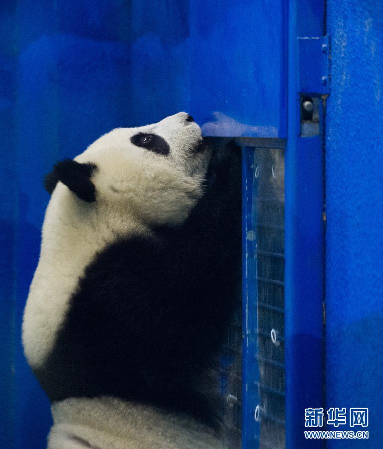 1月7日,大熊猫“圆仔”在台北动物园熊猫馆内活动。新华社记者申宏摄