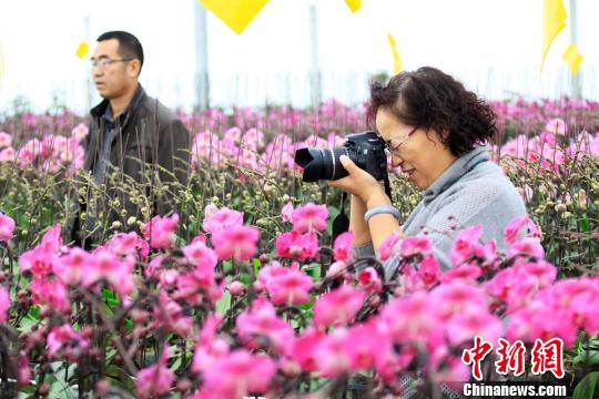 近期,新疆哈密万株兰花上市,吸引诸多游客在新疆哈密市西戈壁某园林股份有限公司哈密分公司的温室大棚内游玩、拍摄。曹新加 摄