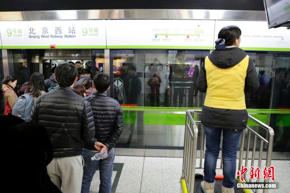 北京地铁站首次安装瞭望台 方便观察乘客上下车情况