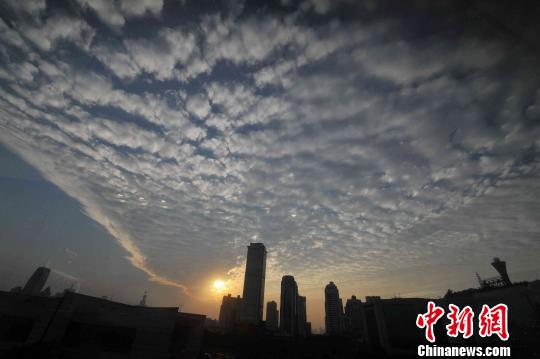 1月9日傍晚,厦门上空出现大片鱼鳞状云层,蔚为壮观。据悉,“鱼鳞云”,学名为透光高积云,一排排一列列形似鱼鳞。民间有“天现鱼鳞云,不雨风也颠”的说法。 张斌 摄