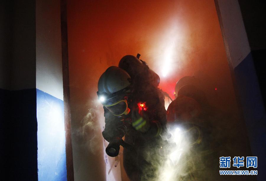1月9日,在海淀消防支队向阳中队,几名“90后”消防战士在进行地下建筑灭火救援训练。新华社记者 王申 摄