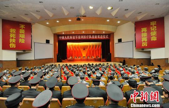 中国人民解放军第二批援利医疗队出征仪式现场。 安源 摄