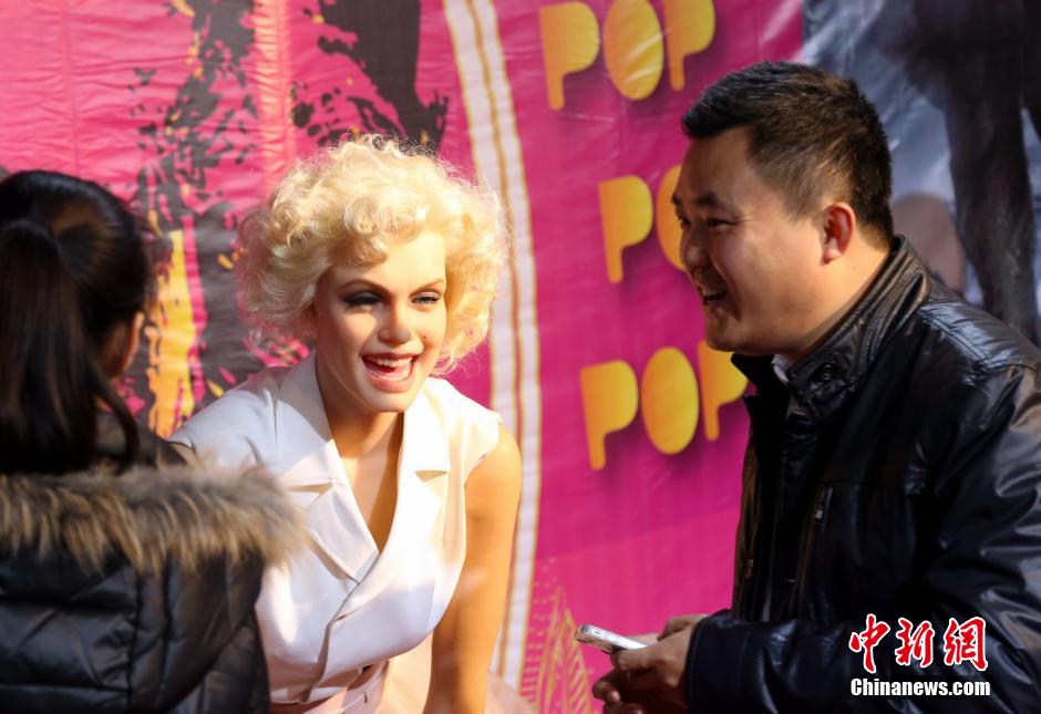 1月11日,许多民众慕名前来南昌一家3D打印明星蜡像馆参观体验。馆内人物既有奥巴马、贝克汉姆、梦露等海外名人,更有中国首富马云,国际功夫影星成龙、李连杰以及赵本山、范冰冰、黄渤、张艺谋等多位名人蜡像,难得与这么多偶像近距离接触,不少民众纷纷尝试各种造型与喜欢的“名人”合影留念。姜涛 摄