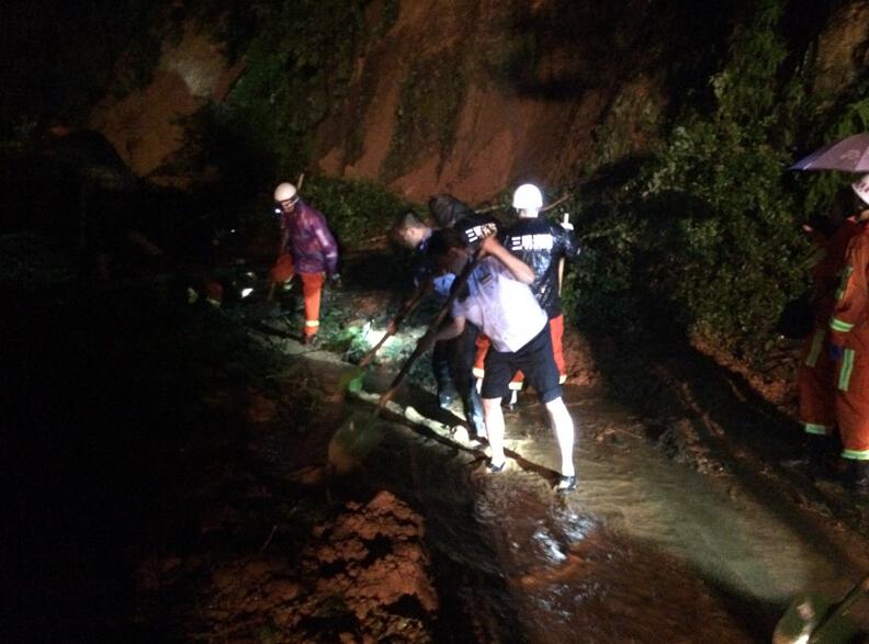 2014年8月19日,福建省三明市梅列区莘口镇发生山体滑坡,多名群众被困,当地公安民警和消防官兵接警后,立即赶赴现场,冒着山体可能再次滑坡的危险组织救援工作。图片来源:新华网