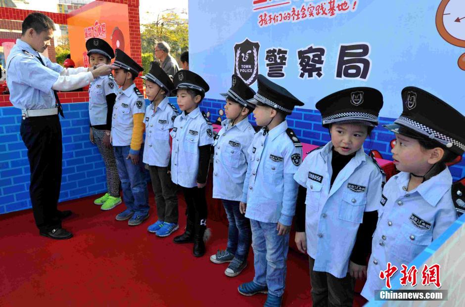1月10日,小朋友在“警察局”体验警察工作。当日是全国公安110宣传日,中国各地警方开展各种形式的110宣传日活动。张斌 摄