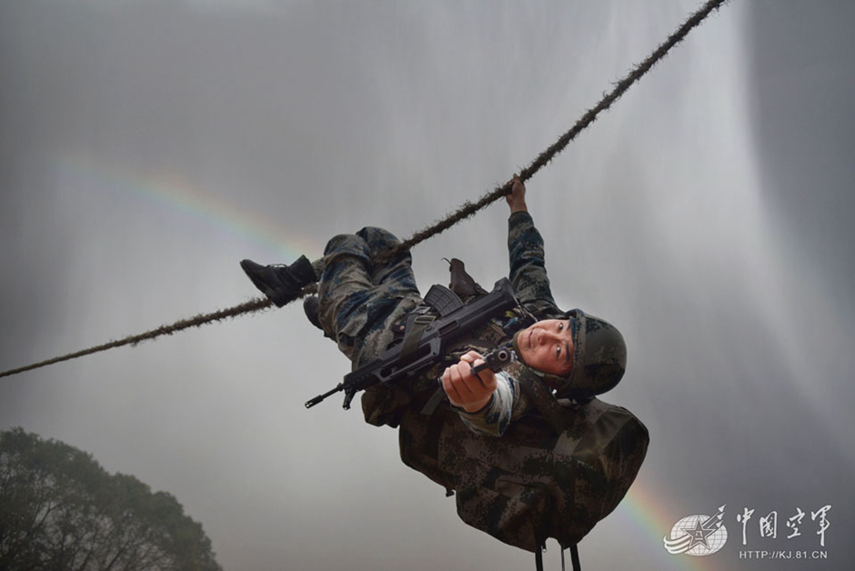 2014年度空军优秀“猎人”王建波迅速牵引过河。
