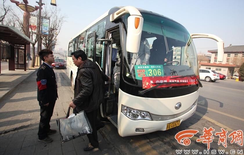 1月7日上午11时许,在临潼区秦唐大道华清池公交站旁,一辆车窗前放有“游5(306路)秦兵马俑馆-西安火车站”牌子的车辆刚刚进站,就被二十多名身穿便装的人员拦住。经交流后,车上的游客全部下车,从重庆来西安旅游的李先生一家,转乘915路车辆继续前往兵马俑景区。