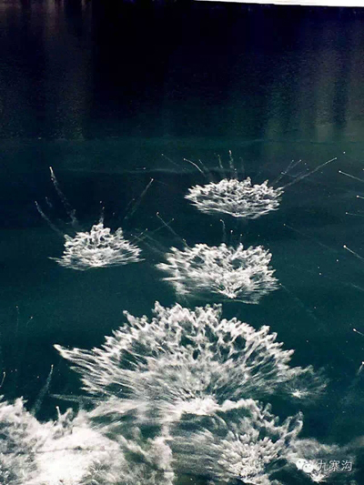 水面自然凝结的冰花儿,好酷!朋友们看清楚咯,这个是自然凝结的唷,不要为了追求拍摄效果丢石子儿哈,美景大家要一起保护!