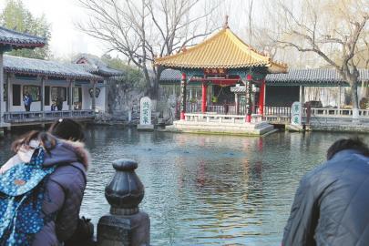 1月11日,游人在观看喷涌乏力的趵突泉。当日,有着“天下第一泉”美誉的趵突泉水位下跌至27.82米,连续29天失守28米的橙色预警线,正向27.6米的红色预警线逼近。专家表示,如果这一势头不能得到有效缓解,趵突泉可能面临停喷危机。据了解,趵突泉自2003年9月6日复涌以来,至今已持续喷涌11年。目前,我市回灌补源等节水保泉措施正在有序推进。