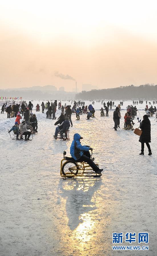 1月11日,小朋友们在家长陪伴下在长春市南湖公园冰上游乐场内玩耍。寒假伊始,吉林省长春市的一些家长纷纷带着孩子来到户外参与各项趣味冰雪娱乐项目,让孩子们在玩冰戏雪中欢度寒假时光。 新华社记者许畅摄