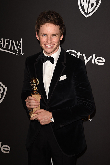 2015年1月11日,在美国洛杉矶,埃迪·雷德梅因凭借在电影《万物理论》中的出色表演获得金球奖最佳剧情类男主角奖。新华社/法新