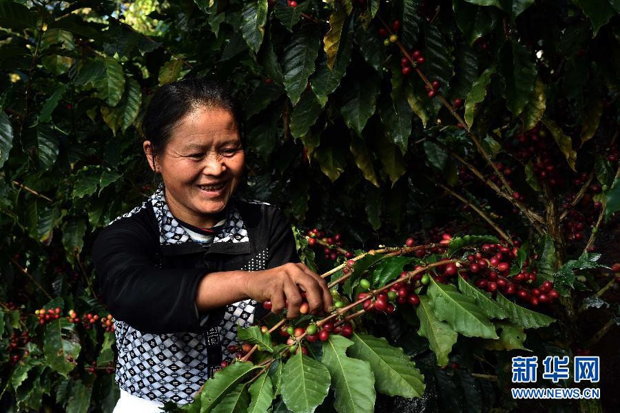普洱市思茅区倚象镇蚌弄村曼中田雨林咖啡园的一位苗族咖农在采摘咖啡鲜果(1月12日摄)。目前,我国咖啡种植主产区云南普洱的30余万亩咖啡进入采摘收购高峰期,预计本季咖啡鲜果平均亩产量将超过1300公斤,咖啡干豆总产量约5万吨。新华社记者 陈海宁 摄