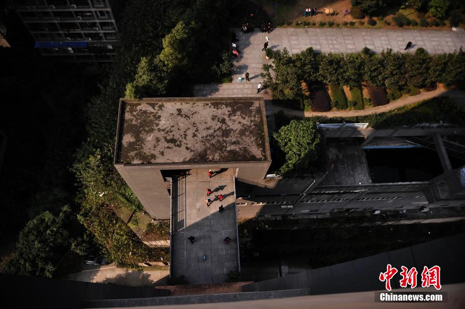 1月13日,不少居民经过12层楼高空中天桥出行。重庆一30余层高的小区楼房,在12楼层处搭起了通向主干道的人行天桥。据悉,该小区多数居民出行都会选择行走该天桥,而少数居民选择从1楼绕行。图为居民经过天桥出行。 陈超 摄