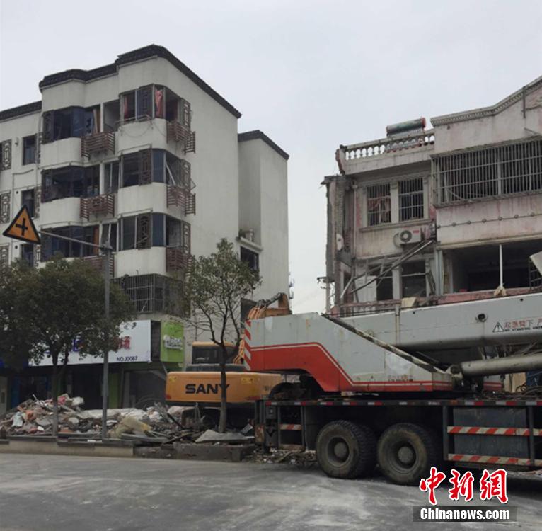 图为1月13日爆炸事故,震塌半幅楼面。 孙权 摄
