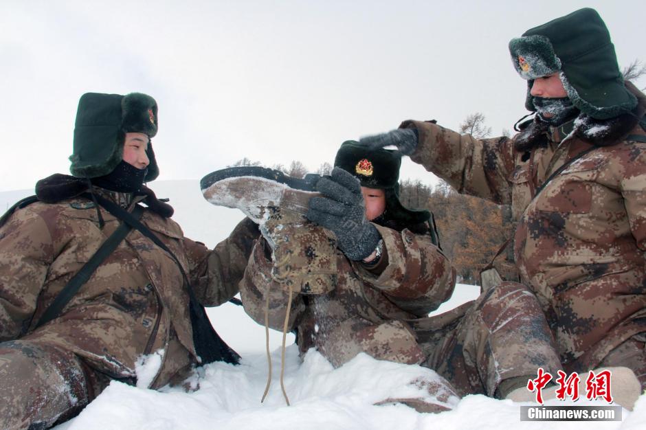 1月中旬,新疆阿勒泰军分区红嘴山边防连官兵踏着及膝深的积雪,冒着零下30℃的严寒,在边防线上巡逻。在大雪封山长达八个月期间,这里的陆路交通完全中断。 中新社发 杨云龙 摄