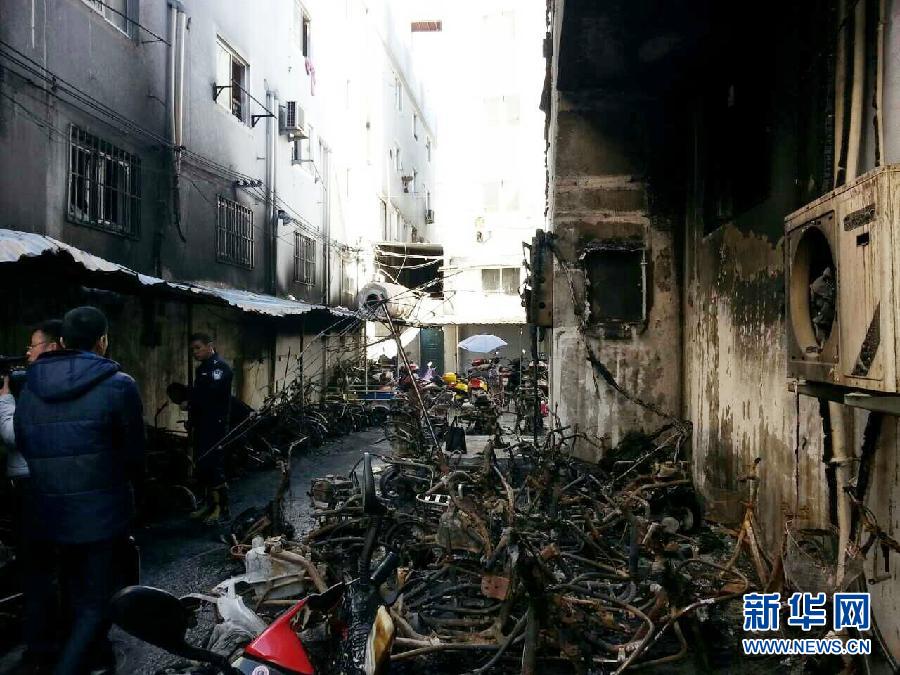 这是1月14日拍摄的火灾事故现场(手机拍摄)。据浙江省台州市消防部门介绍,当日4时30分许,台州市玉环县解放塘社区一住宅楼室外停车棚起火,浓烟向楼道蔓延。截至发稿时,火灾造成8人死亡。目前大火已扑灭。新华社发