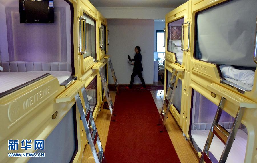 这是郑州市某小区内的“胶囊”旅馆(1月15日摄)。近日,起源于日本的“胶囊”旅馆在河南郑州悄然兴起。床铺、网络电视、无线网络,两平方米左右的舱房内一应俱全,前来住宿的客人以学生、旅行者及求职的年轻人居多。新华社记者 李安摄