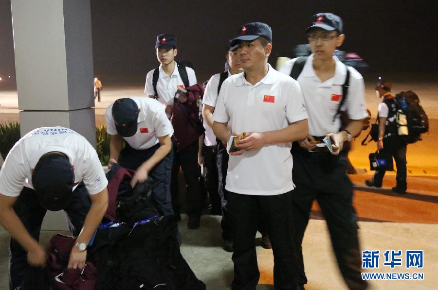 中国第三批援塞拉利昂医疗检测队44名先遣队员14日晚抵达塞拉利昂首都弗里敦。此批队伍轮换后,中国向西非疫区三国派出医务人员和公共卫生专家累计达近800人,协助开展公共卫生培训、实验室检测、病例留观及治疗等工作。 新华社发(黄浩摄)