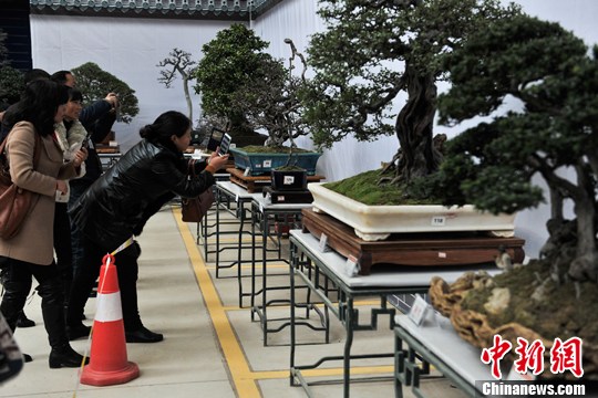 1月15日,2015年昆明(斗南)中国盆景精品邀请展暨云南赏石根艺展在昆明展出。中新社发 任东 摄