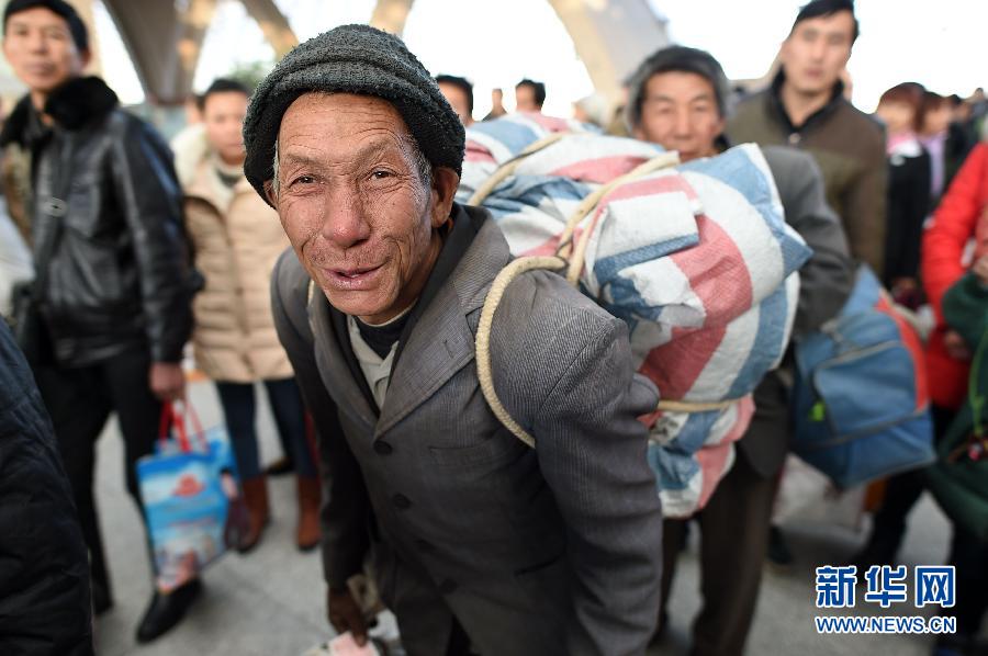 1月15日,旅客在银川火车站排队进站准备上车。近日,随着宁夏各建设工地陆续停工,许多农民工选择避开春运高峰,提前返乡。农民工客流与各高校陆续放假的学生客流叠加,兰州铁路局银川客运段迎来客流小高峰,客运部门采取加大执勤人员配备,设立疏导岗位等方式,应对小高峰的到来。新华社记者 王鹏 摄