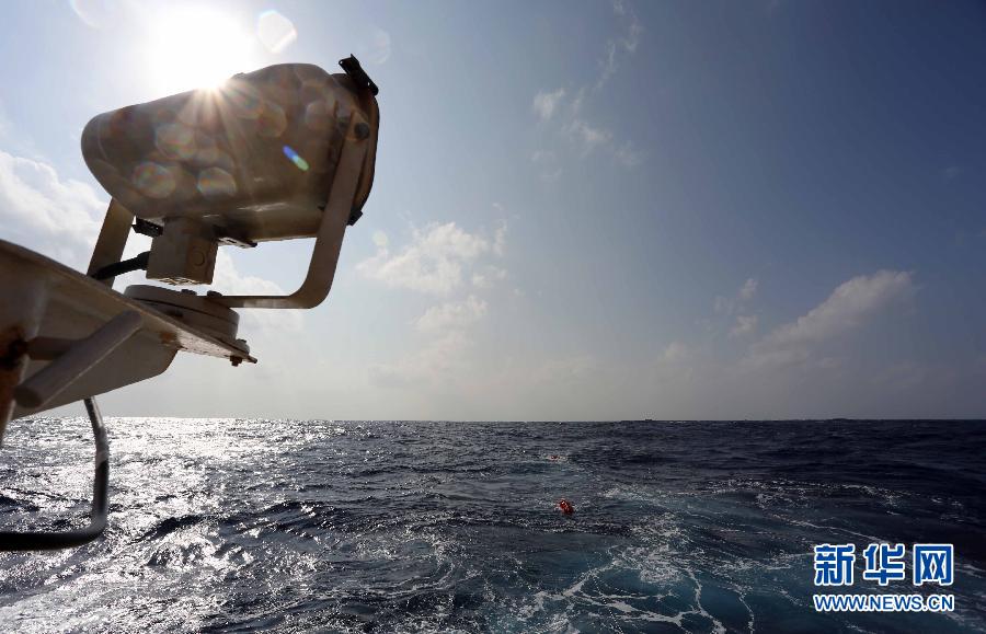 正在西太平洋海域作业的中国“科学”号海洋综合考察船,日前投放了“沉积物捕获器”,研究太平洋黑潮暖流对中国的影响,目前这一装置工作状态良好。 “沉积物捕获器”是一组由底砣、捕获器、浮球组成的装置。底砣由4个火车轮子制成,重约1.25吨,沉入约3100米的海底。两个高约1.5米的黄色漏斗型装置为捕获器,由绳索与底砣相连,分别固定在距海底240米、距海面700米的高度。捕获器上方是4组橙色浮球,每组3至5个,由绳索相连,每个浮球是高约半米的圆柱体。浮球与底砣可确保海水中的捕获器水深相对稳定。新华社记者 孟菁 摄