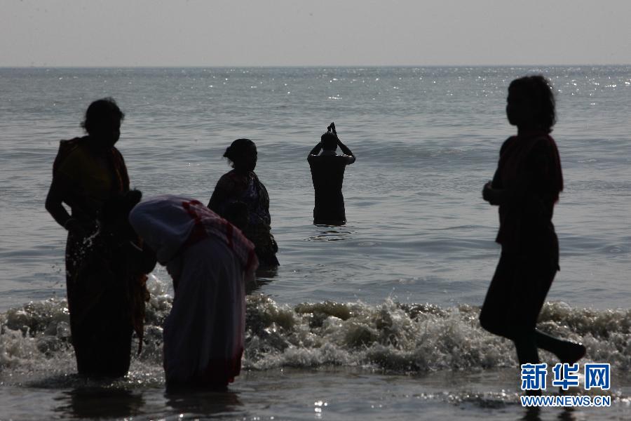 1月15日,印度教信徒在印度西孟加拉邦萨格尔岛上朝圣。位于印度西孟加拉邦恒河三角洲、加尔各答以南约100公里的萨格尔岛是印度教的著名朝圣中心。每年1月14至15日,会有数十万印度教徒来到这里的海边沐浴、拜谒寺庙。新华社记者郑焕松摄