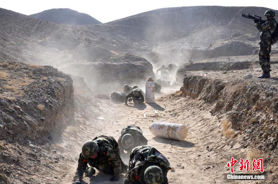 武警新疆边防总队喀什边防支队开展冬季军事比武,针对新兵开展驻外训练,活动到3月底结束。1月15日,武警新疆边防总队喀什边防支队某边防大队凌晨将新兵带到戈壁滩,组织新兵开展解救“人质”、野外帐篷搭建、冲出“战区”、突袭等科目训练。据悉,多年来,该大队先后多次被上级荣记集体二等功、三等功,官兵被荣记一等功5人次,二等功6人次,三等功近百人次。 彭新程 摄