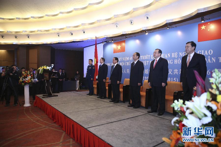 1月15日,中国人民对外友好协会与越南驻华使馆在京共同举办中越建交65周年庆祝招待会。全国人大常委会副委员长吉炳轩、中国人民对外友好协会副会长冯佐库以及来自中联部、外交部、国防部等相关单位负责人,越南驻华大使阮文诗、使馆全体外交官、部分国家驻华使节及中越媒体代表约500人出席。新华社记者丁林摄