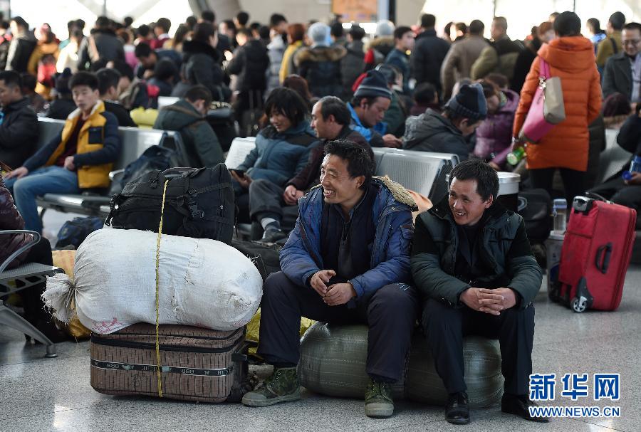 1月15日,旅客在银川火车站候车大厅等候列车。近日,随着宁夏各建设工地陆续停工,许多农民工选择避开春运高峰,提前返乡。农民工客流与各高校陆续放假的学生客流叠加,兰州铁路局银川客运段迎来客流小高峰,客运部门采取加大执勤人员配备,设立疏导岗位等方式,应对小高峰的到来。新华社记者 王鹏 摄