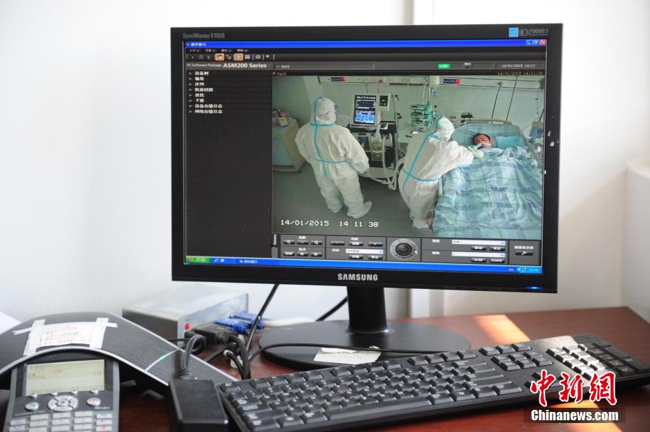 1月14日下午,记者走近深圳第三人民医院感染科实地采访,医护人员正全力以赴救治患者,将实行人禽流感专家组每日会诊制度。自2014年12月29日以来,深圳市新增5例H7N9确诊病例。在该院收治的4例H7N9确诊病例中,有1例患者已痊愈出院,2例患者病情危重,1例患者病情平稳。中新社发 陈文 摄
