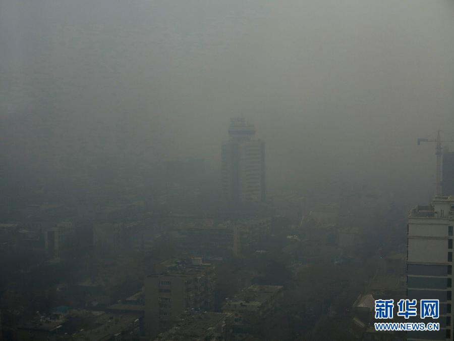 1月15日,济南市大观园一带的高楼几乎隐没在雾霾中。当日,济南持续雾霾天气,PM2.5指数为384,空气质量指数类别为严重污染,不少市民纷纷戴上口罩出行。 新华社记者 冯杰摄