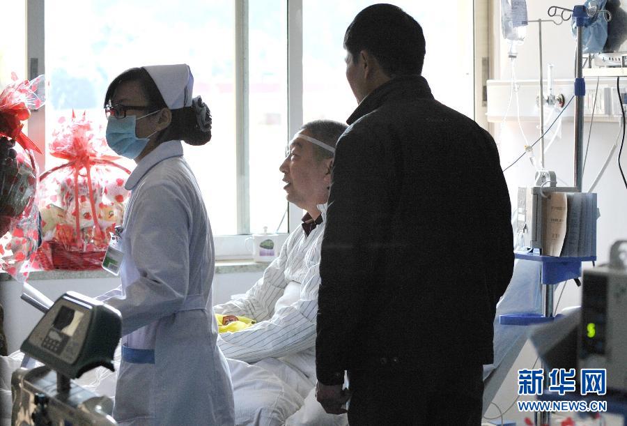 1月15日,徐姓伤者(中)在厦门市第一医院病房接受治疗。