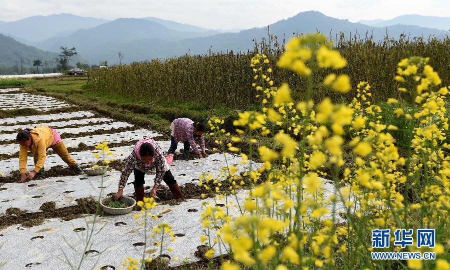 1月14日,云南省德宏傣族景颇族自治州芒市风平镇遮晏村的几名傣族农妇在田间劳作。新年伊始,地处祖国西南边陲的云南省德宏傣族景颇族自治州已是一派春意盎然,农民们又开始了新一年的耕耘。他们在抓好冬季农作物田间管理的同时,积极做好春耕备耕工作,争取新一年农业丰收。新华社记者 蔺以光摄
