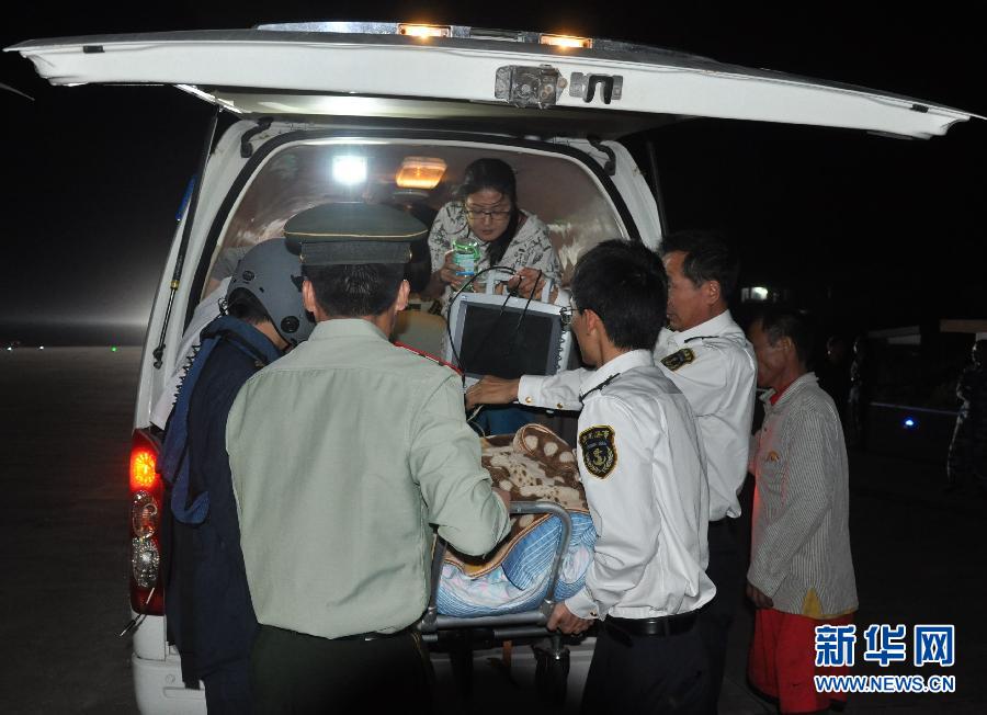 当日,三沙海事局永兴岛值班室接到三沙市委值班室通报,广东台山籍“台沙2943”渔船的一名渔民突发疾病,生命垂危,因三沙市人民医院医疗条件有限,无法展开进一步治疗。三沙海事局积极采取救助行动,南海救助局第一飞行队、海军永兴某场站、医院等部门通力协作,将遇险渔民送往三亚医院急救。新华社发(谢文卿摄)