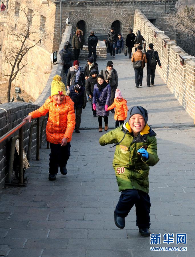 1月13日,孩子们在爬长城。近日,部分第七批援藏干部自发组织了“那曲申扎卡乡学子北京行”活动。