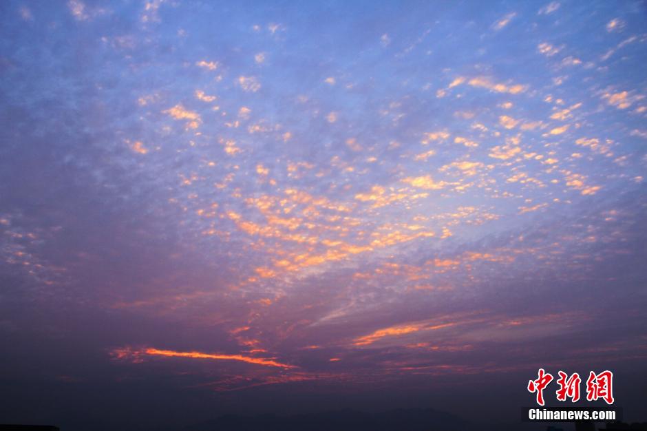 2015年1月16日傍晚,江西遂川县上空显现一条“红通通的飞龙”,点缀在天,美妙绝伦。中新社发 李建平 摄 图片来源:CNSPHOTO