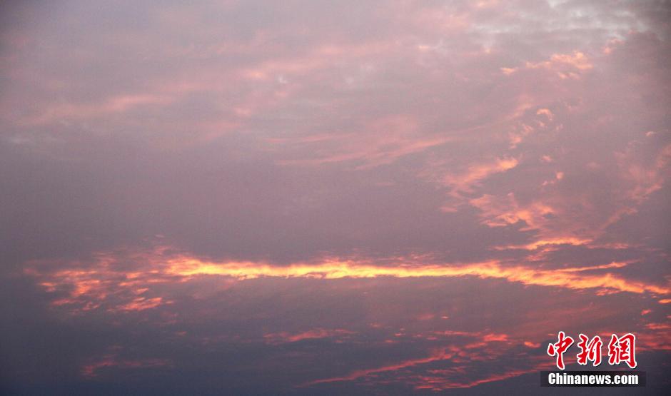 2015年1月16日傍晚,江西遂川县上空显现一条“红通通的飞龙”,点缀在天,美妙绝伦。中新社发 李建平 摄 图片来源:CNSPHOTO