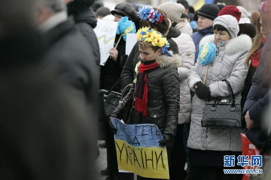 1月18日,在乌克兰顿涅茨克州沃尔诺瓦哈市,人们参加和平游行。乌克兰全国多地18日举行和平游行,悼念在国内武装冲突中的死难者。据联合国有关机构公布的数字,自去年4月中旬以来,乌克兰东部武装冲突已造成至少4707人死亡、1万多人受伤。新华社发(叶尔莫琴科摄)