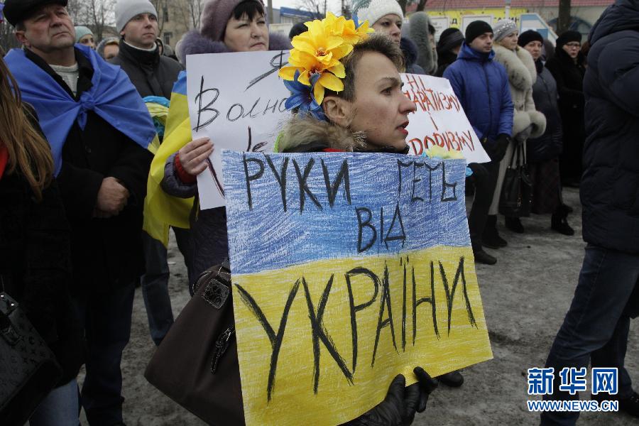 1月18日,在乌克兰顿涅茨克州沃尔诺瓦哈市,人们参加和平游行。乌克兰全国多地18日举行和平游行,悼念在国内武装冲突中的死难者。据联合国有关机构公布的数字,自去年4月中旬以来,乌克兰东部武装冲突已造成至少4707人死亡、1万多人受伤。新华社发(叶尔莫琴科摄)