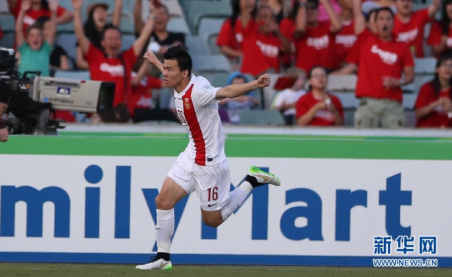 1月18日,中国队球员孙可庆祝进球。当日,在澳大利亚堪培拉体育场进行的亚洲杯足球赛B组第三场比赛中,中国队对阵朝鲜队。 新华社记者曹灿摄